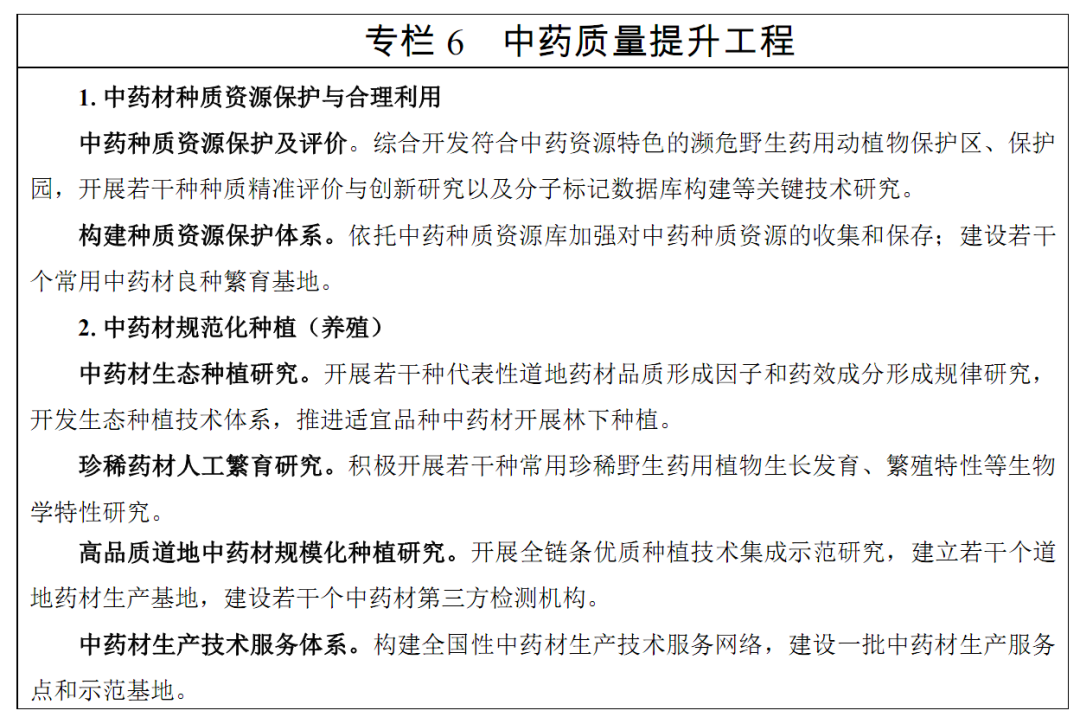 ——中医药健康产业全面升级。中药材种业管理进一步规范,中药材总体质量控制水平显著提升,中药注册管理和科学监管不断优化,中药新药研创活力进一步增强。推动中医药与康复、养老、旅游等领域深度融合,人民群众多层次、多样化的健康需求得到满足。